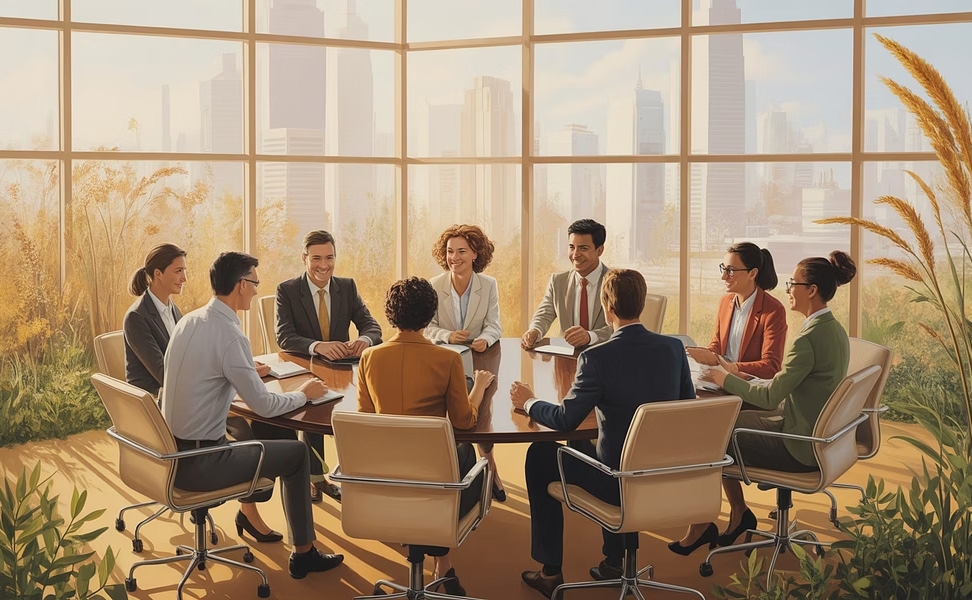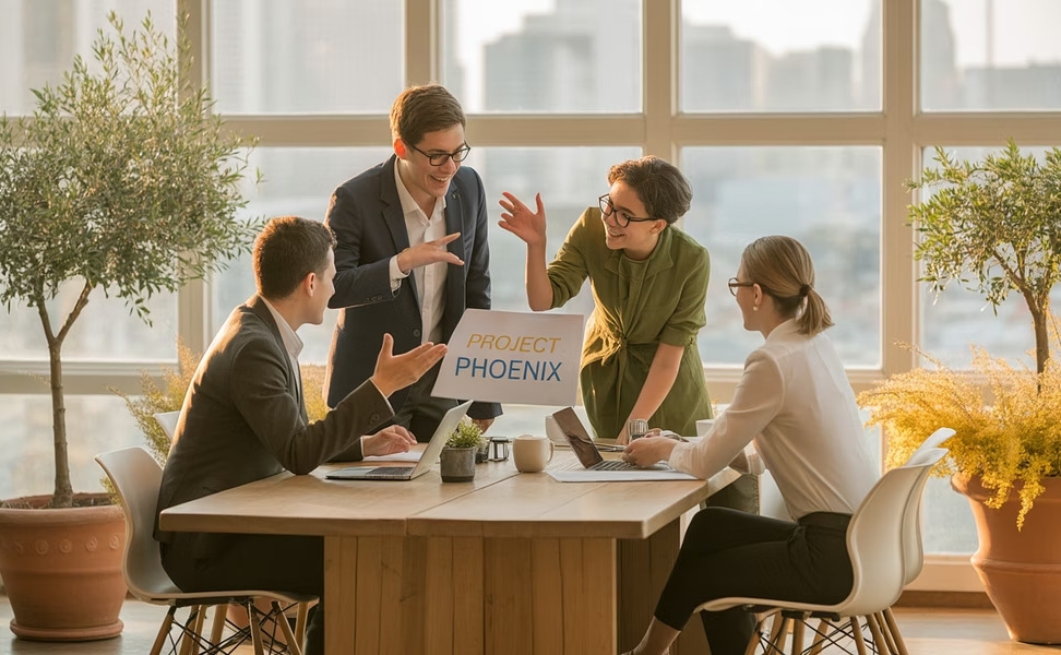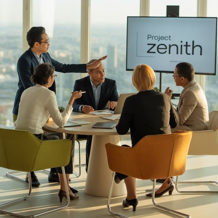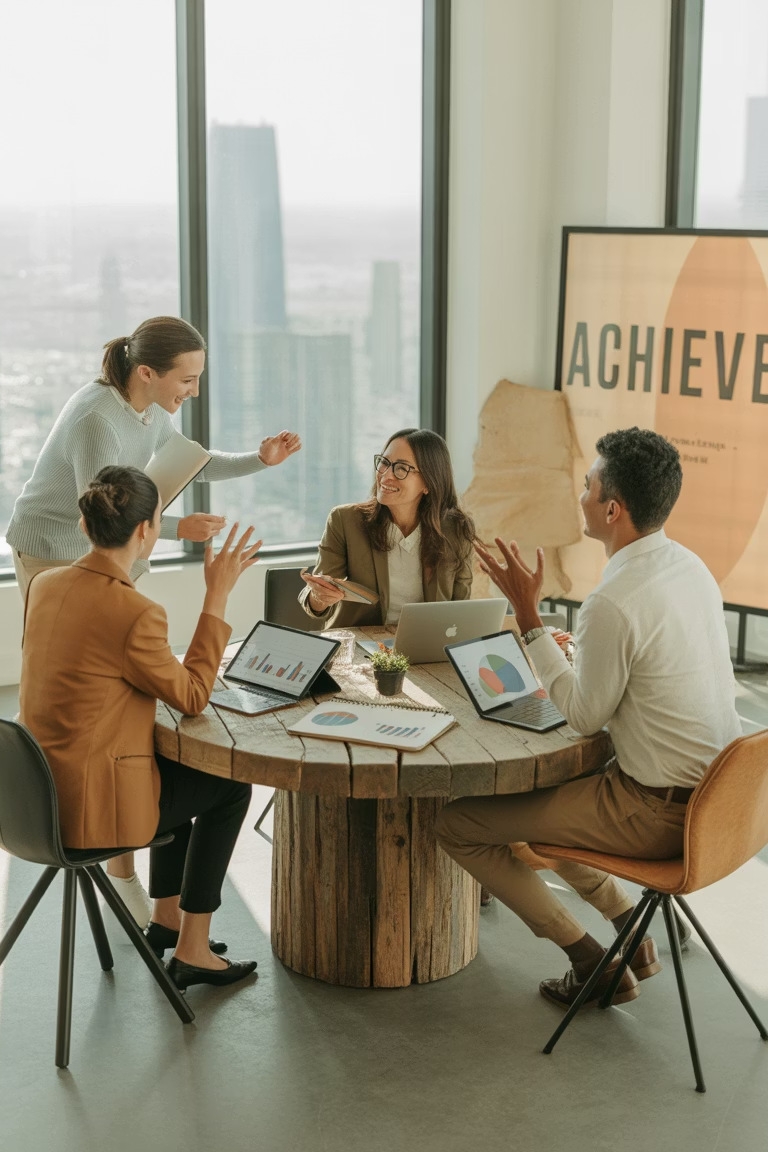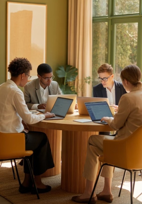 A team with diverse backgrounds, with practical business